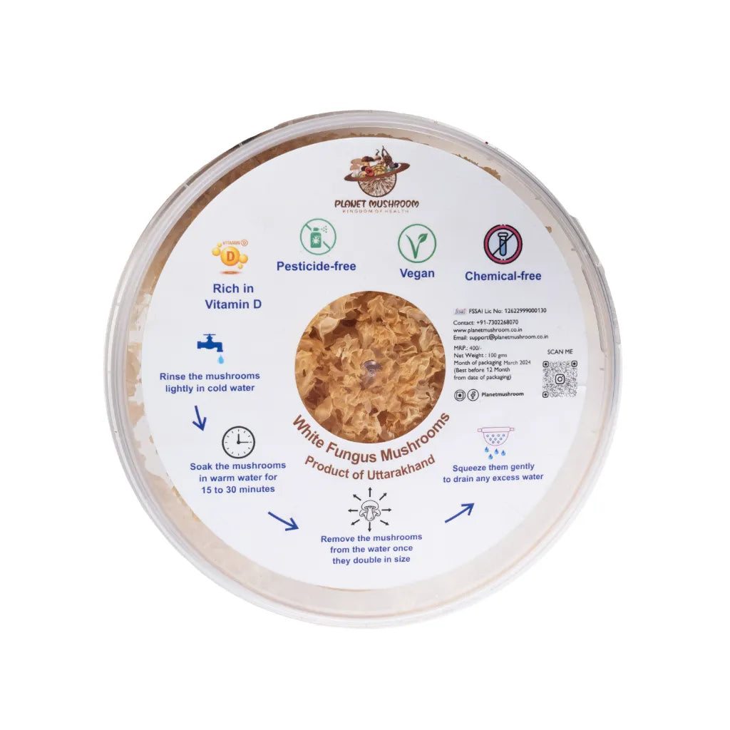 100% Pure Tremella White/Snow Fungus Mushroom | Dried & Nutritious | Antioxidant Rich (100g)
